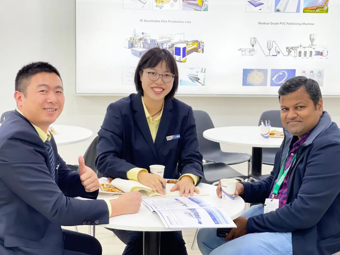 展会的每一天我们都会遇到许多客户总是带着各种各样的问题来咨询我们,无论何种语言和国度;无论从原料、机械到制品终端,对我们来说都是学习和成长的过程,当我们走在一起,分享彼此的知识、经验和见解,问题就不再是问题,而是前行的喜悦。在现场我们把最好的产品和技术展示给客户,寻找到最好的合作伙伴;另一方面把展会中找到的最好项目带回来,通过团队优化升级,形成一个良性的闭环。