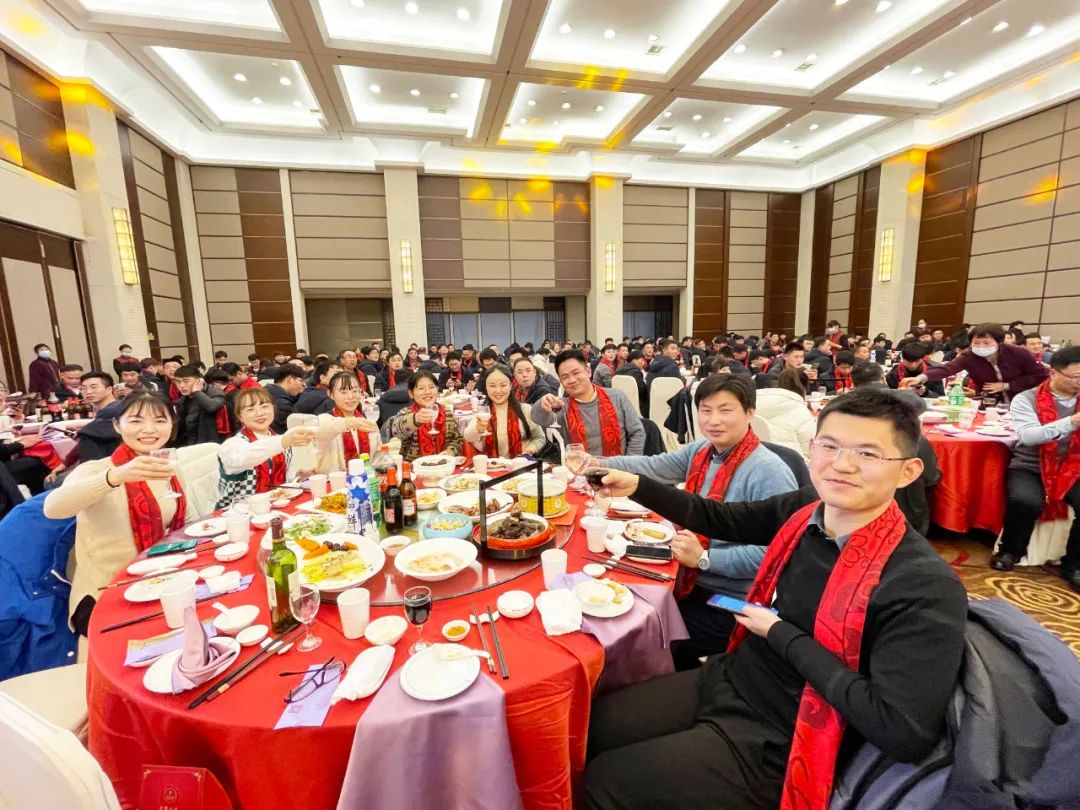 金牛俯首辞旧岁,瑞虎腾跃迎新春。2022年1月27日,金纬机械海宁厂区在海州大饭店隆重举办了2022年迎新春答谢晚宴。来自各公司股东、董事会成员、专业公司总经理、部分客户和供应商代表、合作伙伴、部分优秀员工家属近300人欢聚一堂,举杯同庆,共享2021斐然业绩,展望2022新辉煌。
