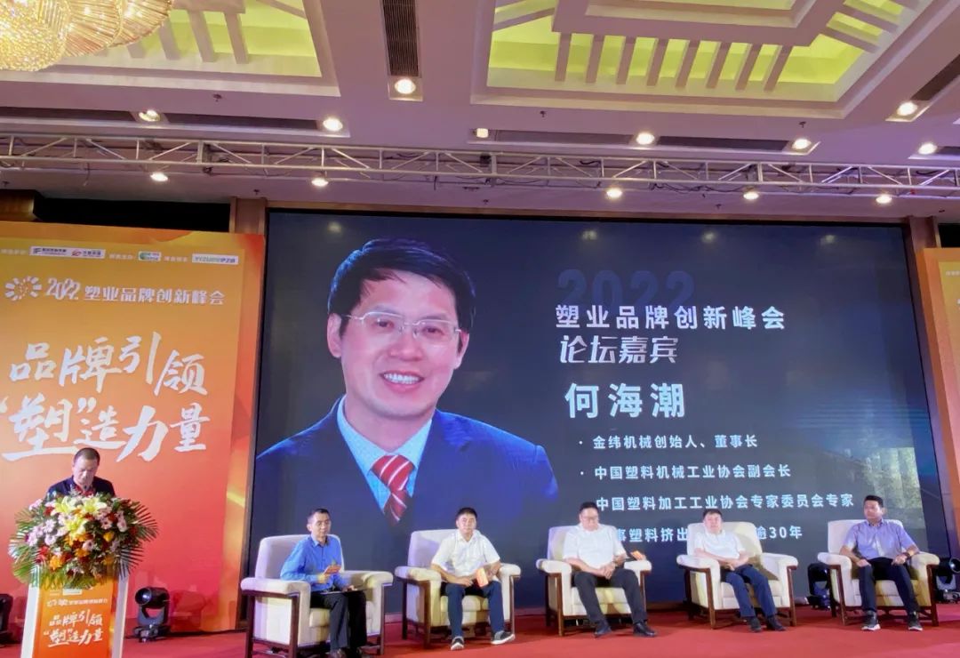 2022年8月1日,由广东塑料工业协会主办的2022塑业品牌创新峰会&塑业品牌颁奖盛典在广东佛山皇冠假日酒店顺利召开。峰会以“品牌引领 ‘塑’造力量”为主题,聚焦塑业企业品牌建设和代际传承,由专家教授、业界优秀品牌掌舵人,通过主题演讲、圆桌论坛等方式,分享他们的真知灼见及成功经验;品牌颁奖盛典,汇聚塑业全产业链近百家优秀品牌。金纬机械成功入选“2021挤出机卓越影响力品牌”与“2021造粒设备卓越影响力品牌”及“吹/吸塑设备卓越影响力品牌”,一连斩获三项荣誉,鉴证金纬机械品牌力量。金纬机械创始人何海潮董事长也在国外为峰会发来了贺信。